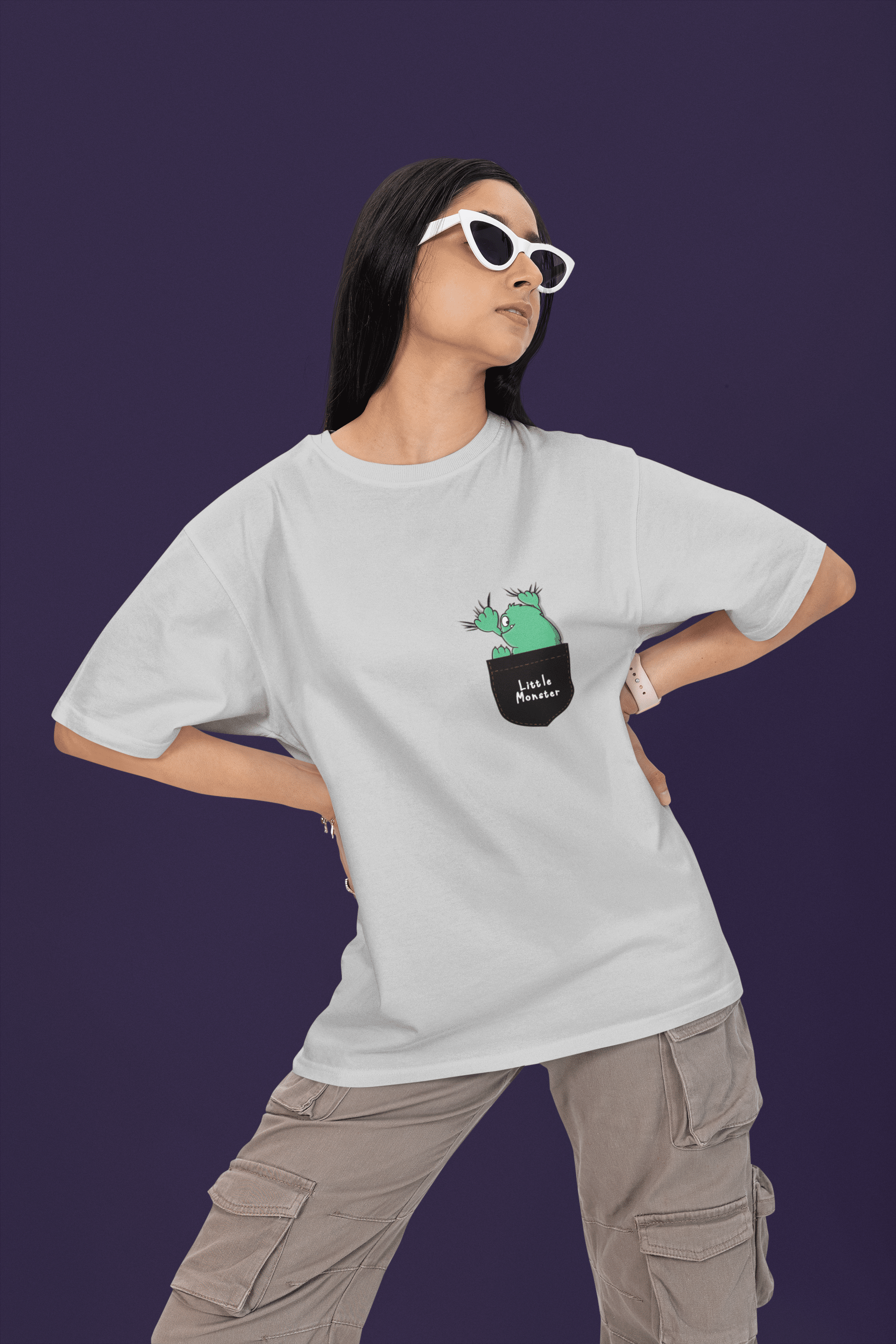 Be the first to review “Women’s Light Grey Oversized T-Shirt – Pocket Monster”