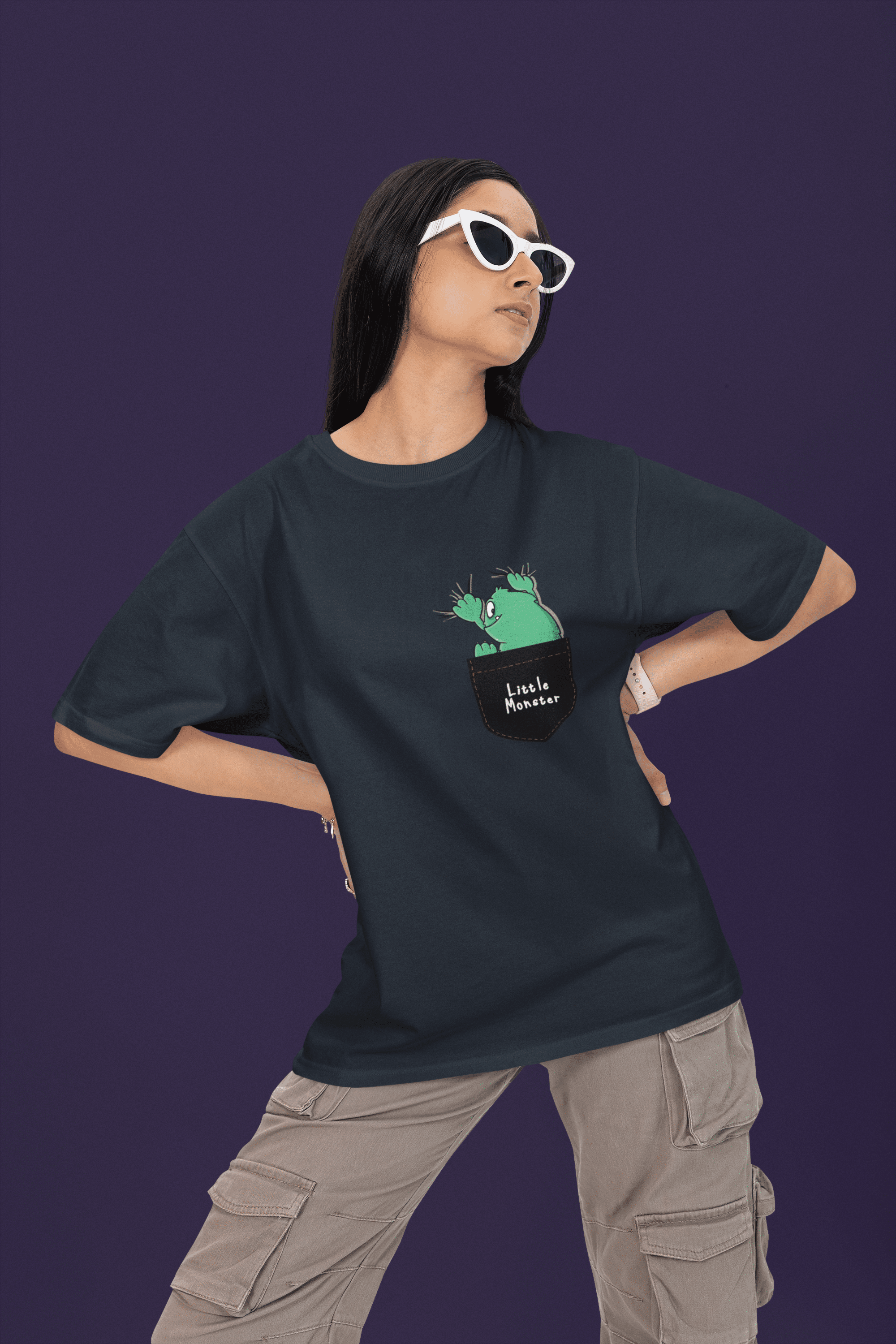 Women’s Navy Blue Oversized T-Shirt – Pocket Monster